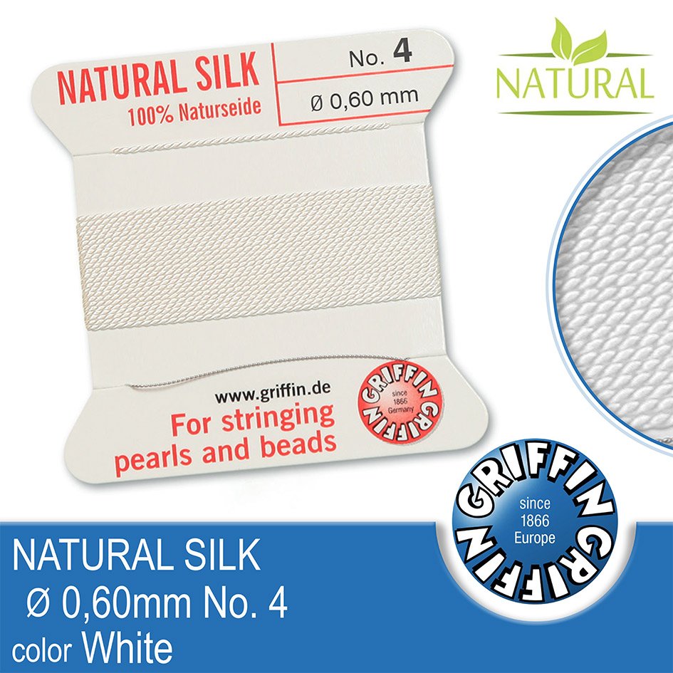 Hedvábná nit s jehlou GRIFFIN síla nitě 0,60mm No.4 délka 2m. Barva White