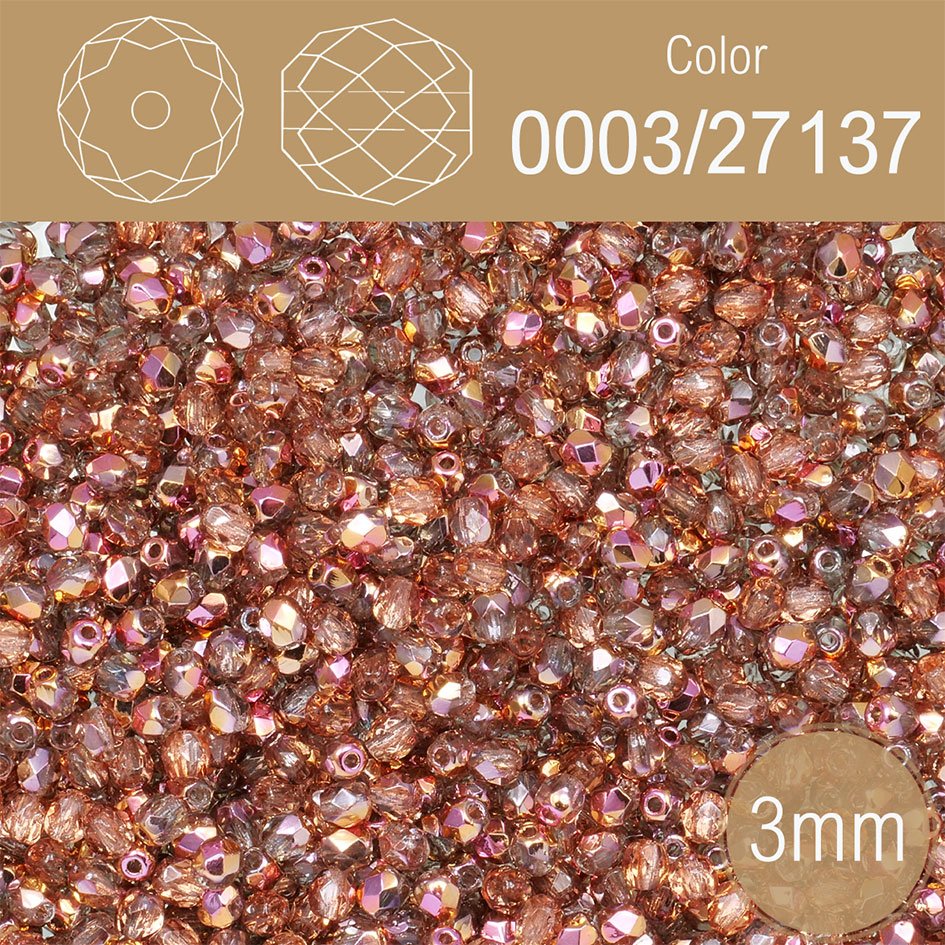 Korálky BROUŠENÉ 3mm. Barva 0003/27137 průhledná s pokovem. Balení 150Ks.