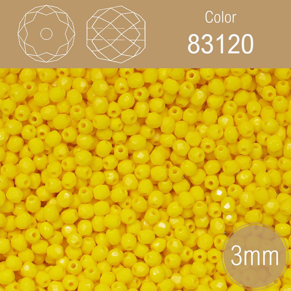 Korálky BROUŠENÉ 3mm. Barva 83120 neprůhledná Žlutá. Balení 150Ks.