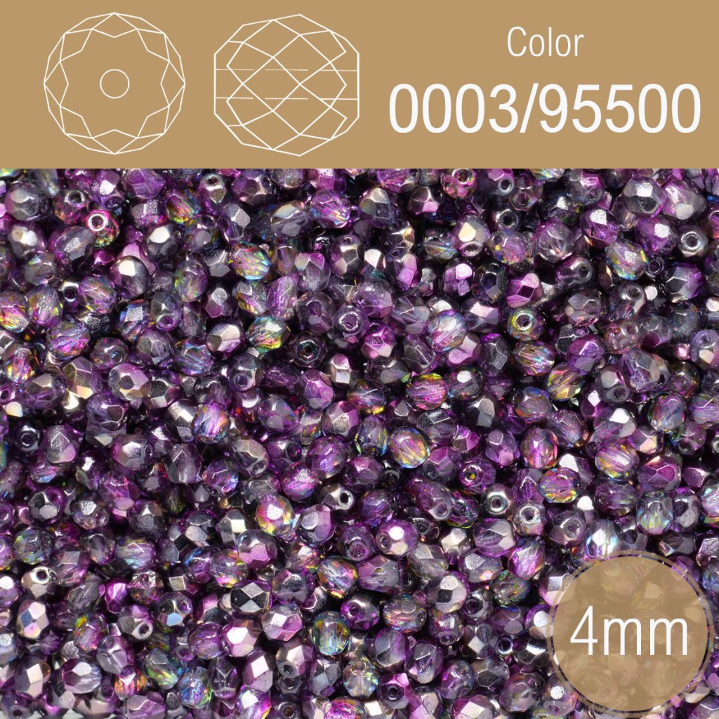 Korálky BROUŠENÉ 4mm. Barva 0003/95500. Průhledná s pokovem . Balení 120Ks.