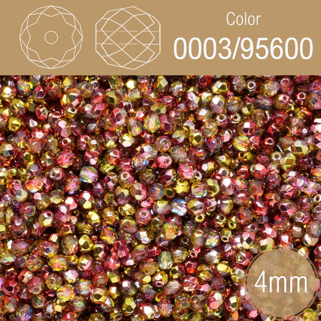 Korálky BROUŠENÉ 4mm. Barva 0003/95600. Průhledná s pokovem . Balení 120Ks.