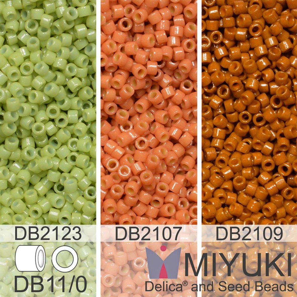 Korálky Miyuki Delica 11/0. Barevné variace č. 42 DB2123, DB2107, DB2109