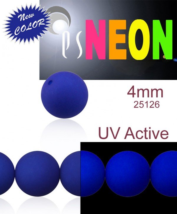 Korálky NEON (UV Active) velikost 4mm barva 25126 MODRÁ TMAVÁ. Balení 31Ks.