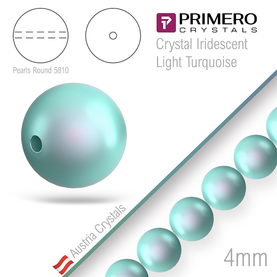 Korálky PRIMERO Crystals 5810. Barva Crystal Iridescent Light Turquoise. Velikost 4mm balení-50Ks.