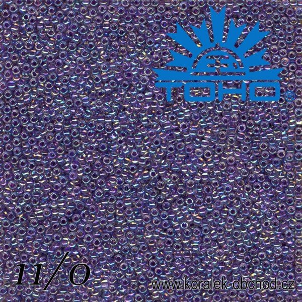 Korálky TOHO tvar ROUND (kulaté). Velikost 11/0. Barva č.774-Inside-Color Rainbow Crystal/Grape Lined . Balení 8g.
