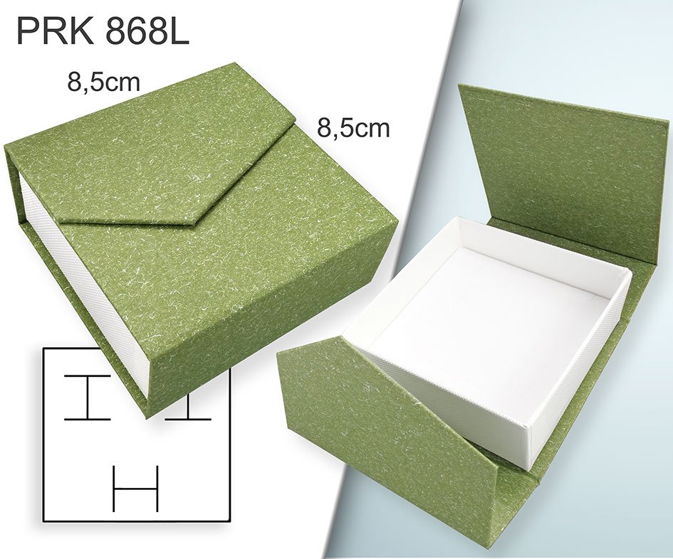 Krabička na šperky. Materiál papír . Ozn. PRK 868L. Velikost 8,5x8,5cm. Barva Zeleno/Bílá s překlopem