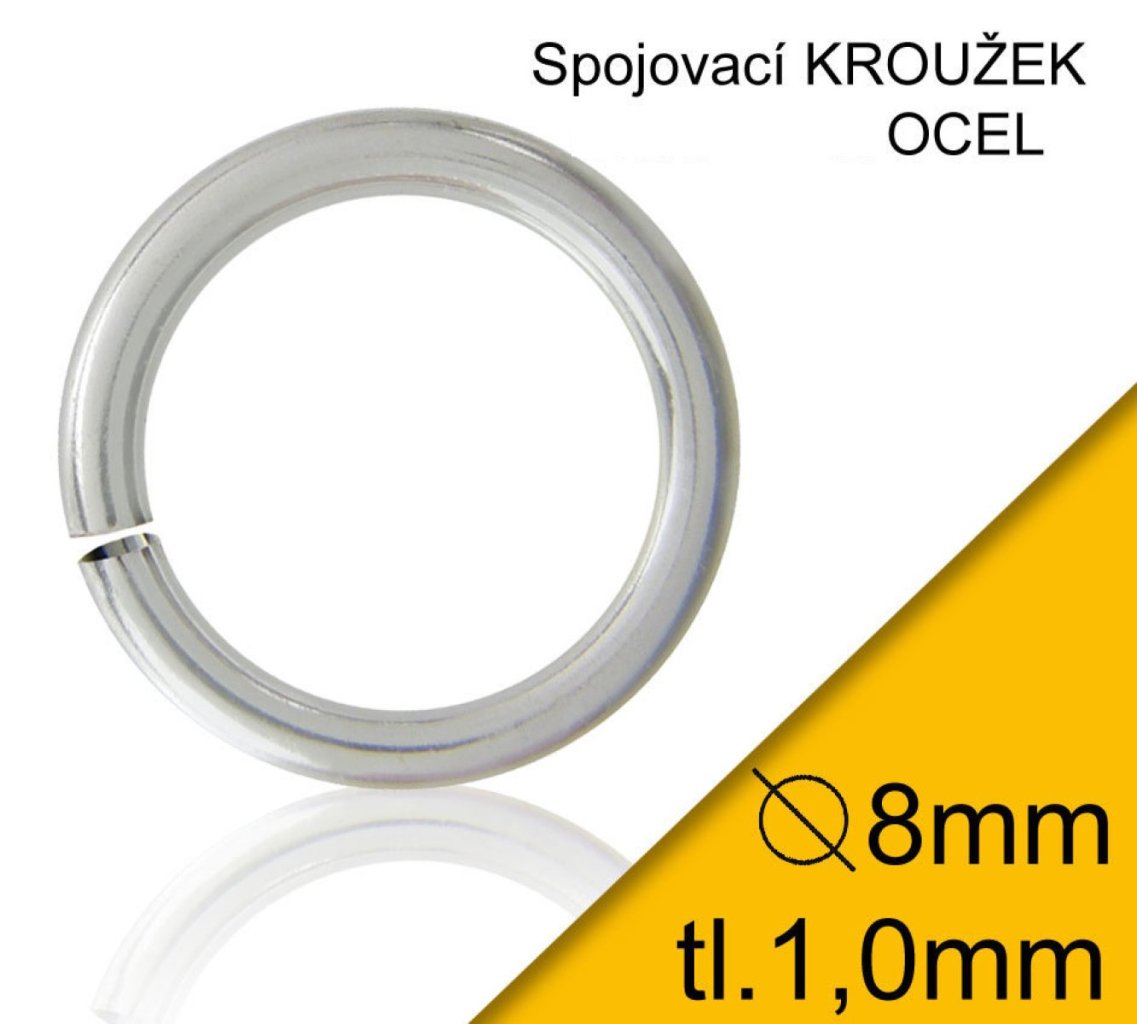 KROUŽEK spojovací-materiál CHIRURGICKÁ OCEL 316L. Velikost venkovní pr.8mm tl.1,0mm. Alternativa pro zákazníky, kteří hledají Hypoalergenní bižuterní komponenty,
