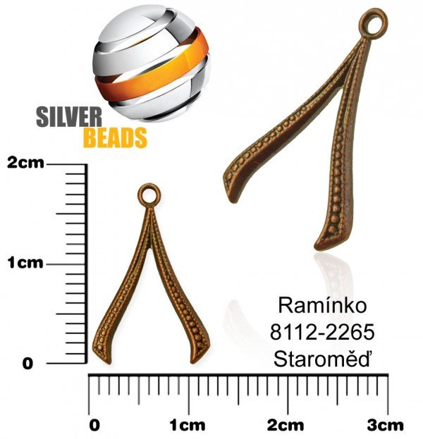 Ozdobné Ranínko vhodné na ozdobení Vašich náušnic či náhrdelníků. Velikost ramínka celková 18x12,5mm tl.1,2mm. Velikost očka vnitřní průměr 1,0mm. Barva STAROMĚĎ. Výrobce SILVER BEADS.
