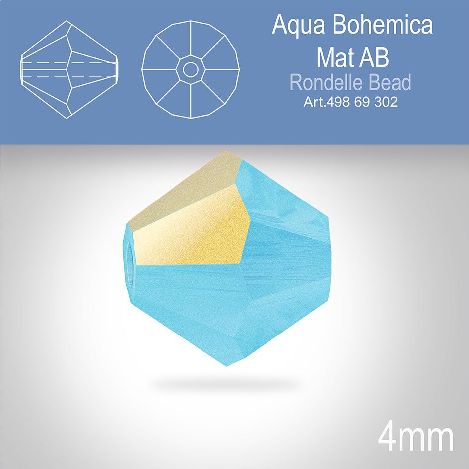 PRECIOSA Bicone MC BEAD (sluníčko) velikost 4mm. Barva AQUA BOHEMICA AB MATT. Balení 30ks .