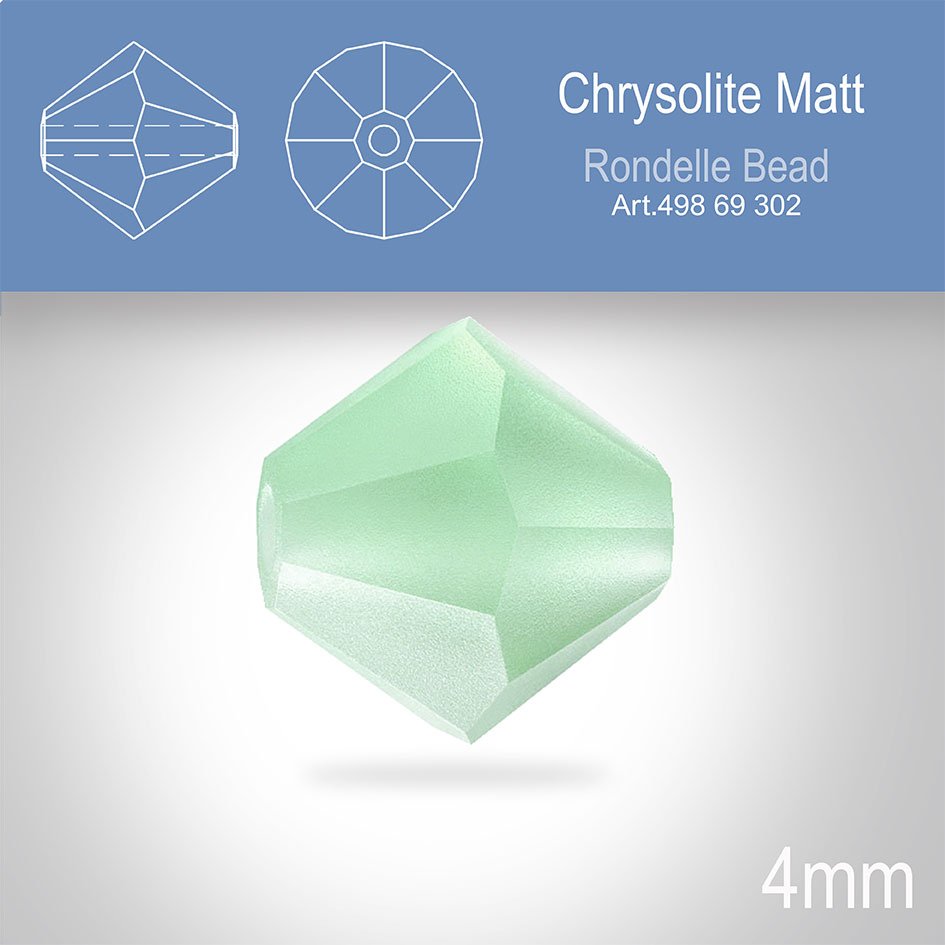 PRECIOSA Bicone MC BEAD (sluníčko) velikost 4mm. Barva CHRYSOLITE MATT. Balení 30ks .