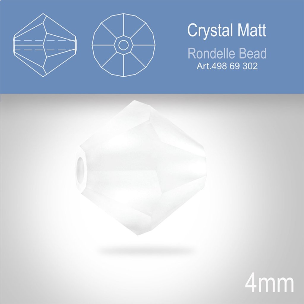 PRECIOSA Bicone MC BEAD (sluníčko) velikost 4mm. Barva CRYSTAL Matt. Balení 30ks .