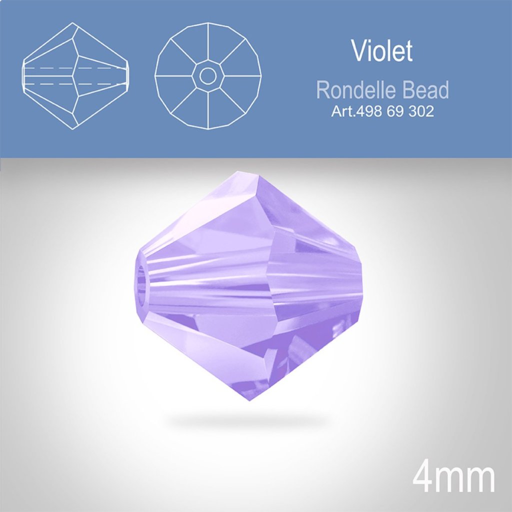 PRECIOSA Bicone MC BEAD (sluníčko) velikost 4mm. Barva VIOLET. Balení 30ks .