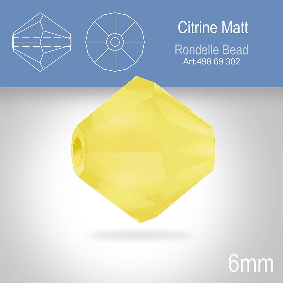 PRECIOSA Bicone MC BEAD (sluníčko) velikost 6mm. Barva CITRINE MATT. Balení 18ks .