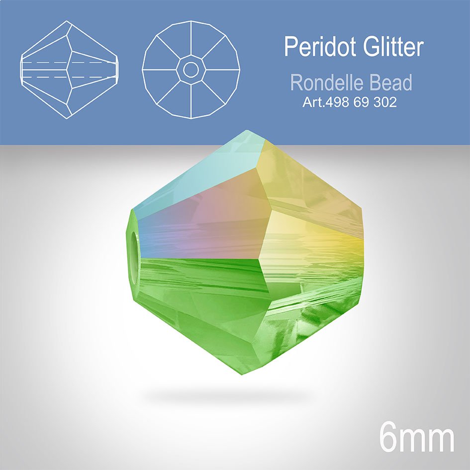 PRECIOSA Bicone MC BEAD (sluníčko) velikost 6mm. Barva PERIDOT GLITTER. Balení 18ks .