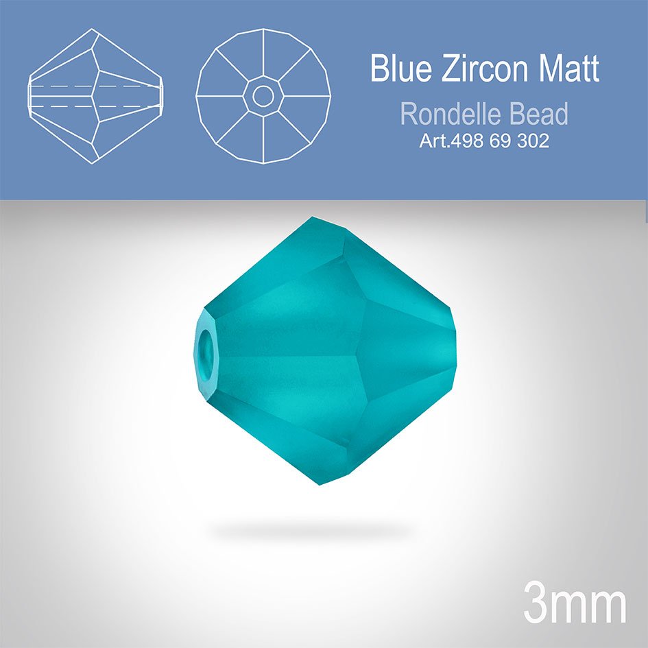 PRECIOSA Bicone (sluníčko) velikost 3mm. Barva BLUE ZIRCON MATT. Balení 40ks