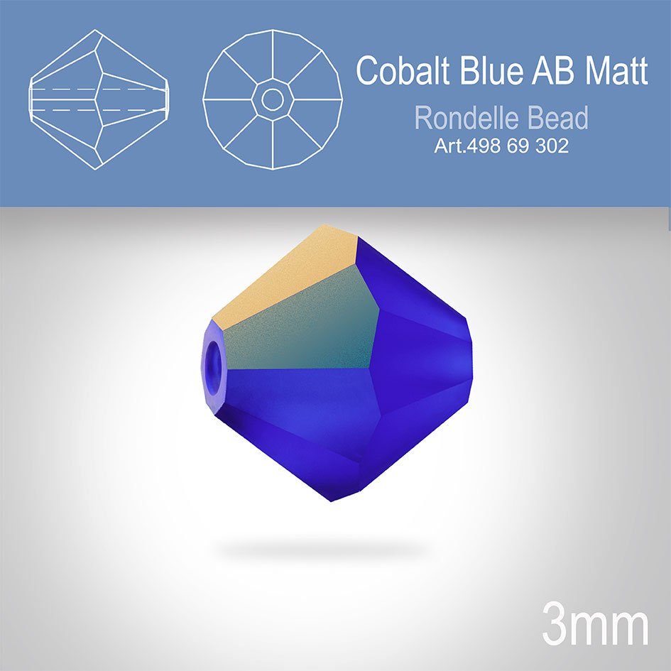 PRECIOSA Bicone (sluníčko) velikost 3mm. Barva Cobalt Blue AB Matt. Balení 40ks