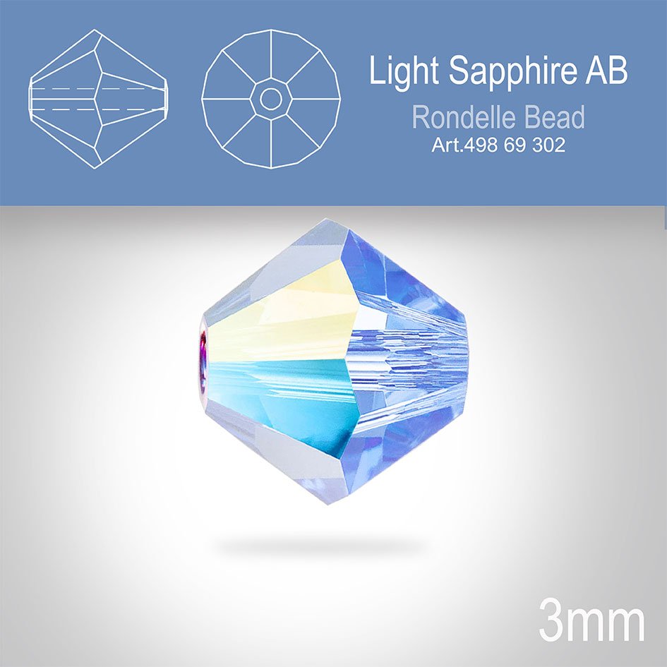 PRECIOSA Bicone (sluníčko) velikost 3mm. Barva LIGHT SAPPHIRE AB. Balení 40ks