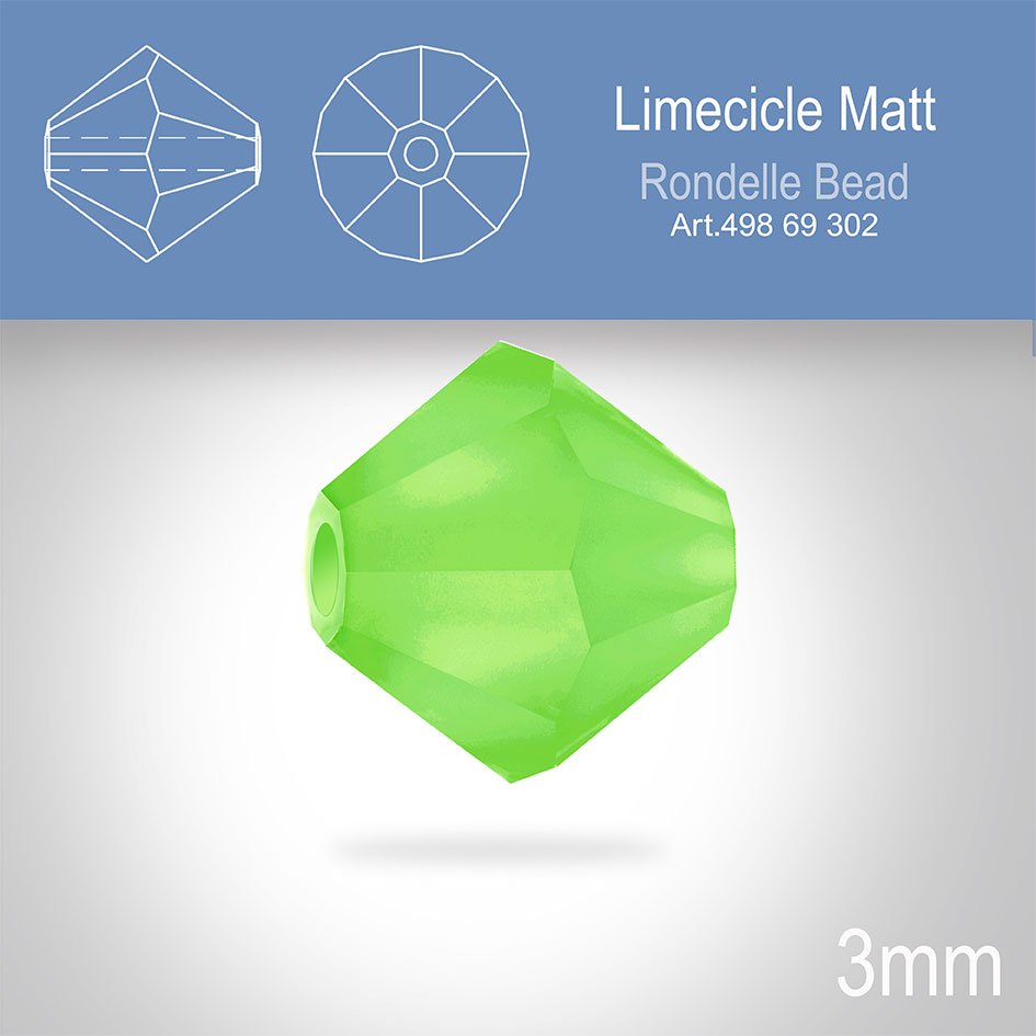 PRECIOSA Bicone (sluníčko) velikost 3mm. Barva LIMECICLE MATT. Balení 40ks