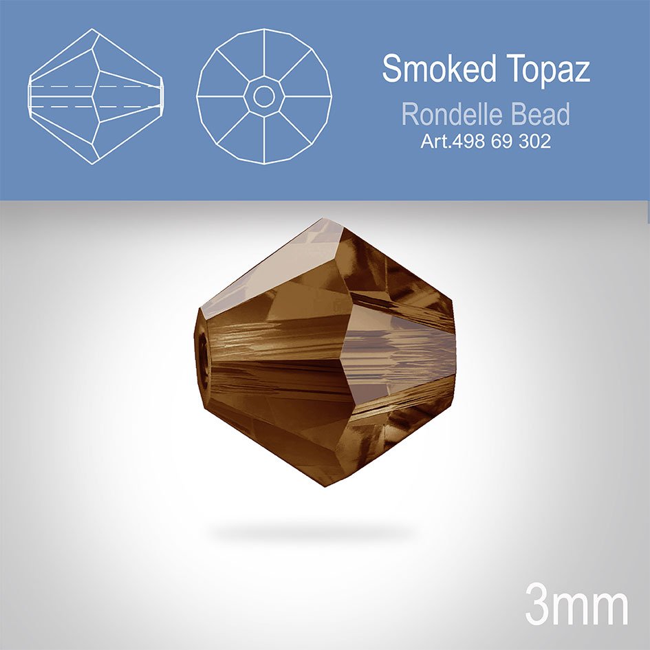 PRECIOSA Bicone (sluníčko) velikost 3mm. Barva SMOKED TOPAZ. Balení 40ks