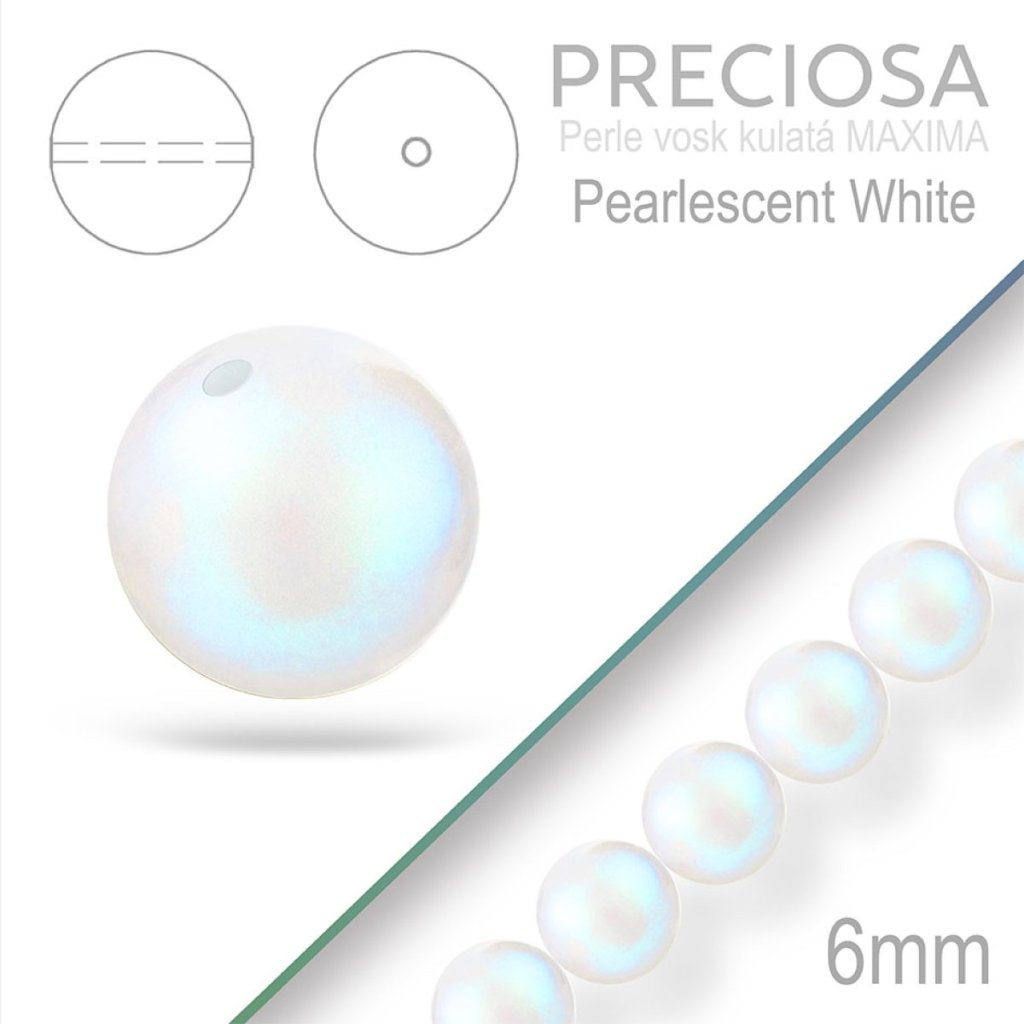 Preciosa Perle voskovaná kulatá MAXIMA barva Pearlescent White velikost 6mm. Balení návlek 21Ks.