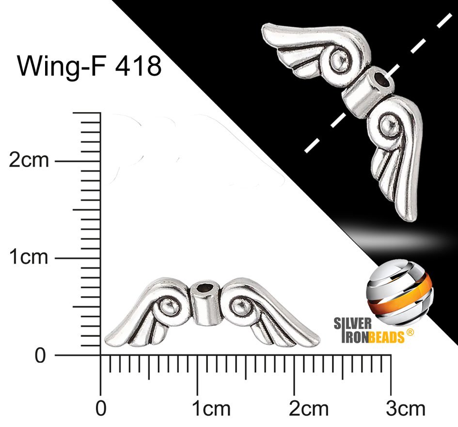 Přívěsek ANDĚLSKÉ KŘÍDLO . Ozn.-WING F418 barva (pokov) STŘÍBRO. Velikost křídla 22x7mm. Velikost otvoru 1,7mm. Otvor vedený středem křídla viz fotografie. - - - - - -