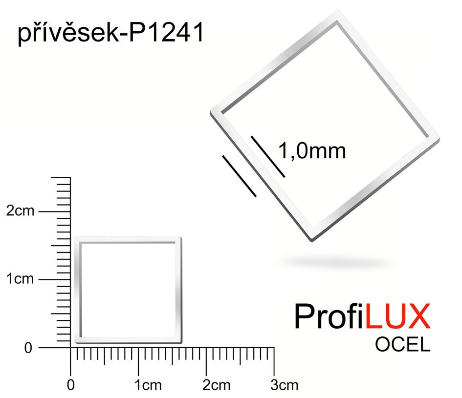 Přívěsek Ocel ozn-P1241 ČTVEREC velikost 16x16mm. Síla 1,0mm. Řada přívěsků ProfiLUX