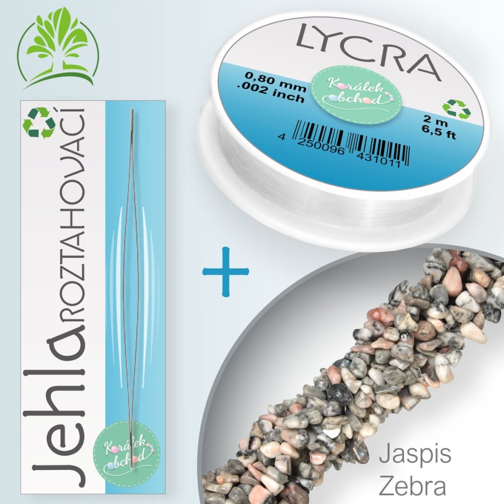 Sada návleku z tromlovaných kamenů 90cm Jaspis Zebra s návlekovým materiálem a jehlou